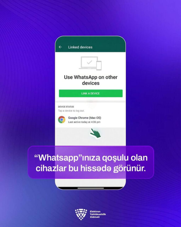 ““WhatsApp” hesabınızın təhlükəsizliyini təmin etmək üçün hesabınıza bağlı olan cihazları mütəmadi olaraq yoxlayın. Əgər bu bölmədə şübhəli görünən və ya tanımadığınız cihaza rast gəlmisinizsə, həmin cihazdan çıxış edin”, – deyə bildirilir.