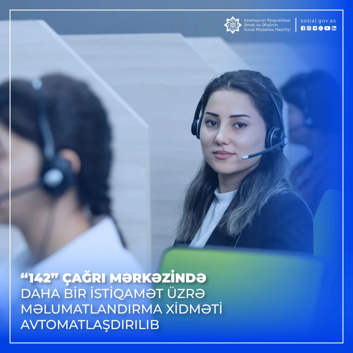 Bundan əvvəl “142” Çağrı mərkəzində ünvanlı sosial yardım və əlillik təyinatı ilə bağlı müraciətlərin cari statusunun öyrənilməsi də avtomatlaşdırılıb. Habelə ünvanlı sosial yardım, əmək qabiliyyətinin müvəqqəti itirilməsinə görə müavinət, yaşa görə pensiya, dəfn üçün birdəfəlik müavinətə görə müraciət qaydalarına dair qanunvericiliyin izahı xidmətləri də elektronlaşdırılıb. Yəni, 142-yə zəng edən şəxslər bu müraciət qaydaları barədə məlumatı dinləyə bilərlər.