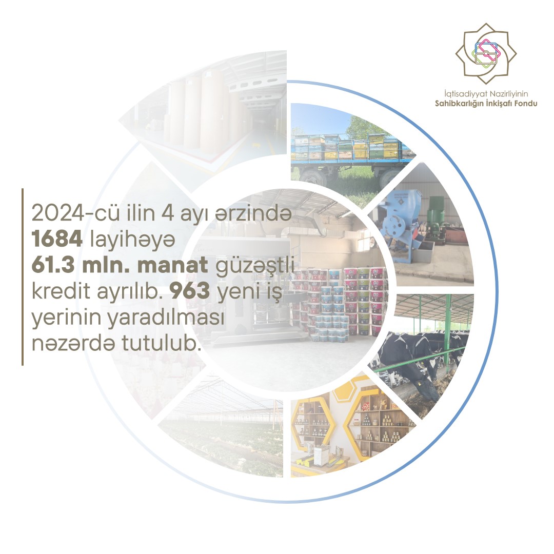 İqtisadiyyat Nazirliyinin Sahibkarlığın İnkişafı Fondu tərəfindən 2024-cü ilin ilk dörd ayı ərzində 1684 layihənin maliyyələşdirilməsinə 61,3 milyon manat güzəştli kredit verilib.