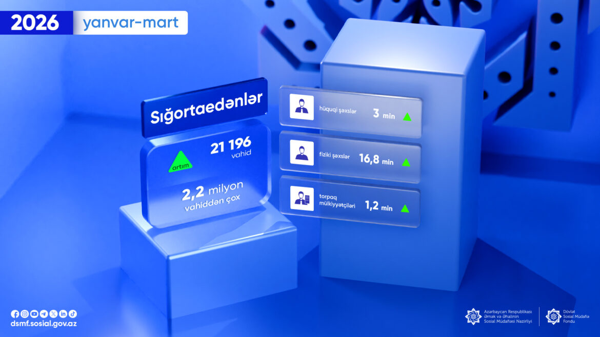 2026-cı ilin yanvar-mart ayları ərzində fərdi uçot sistemində qeydə alınan sığortaedənlərin sayı 21 196 vahid artaraq 2,2 milyon vahiddən çox olub.