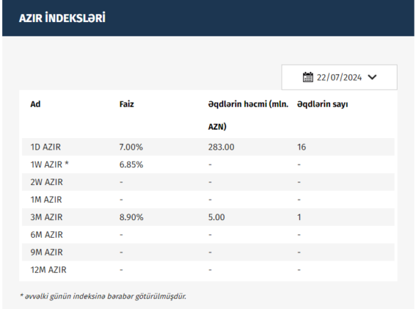 22.07.2024 tarixinə AZIR İNDEKSLƏRİ