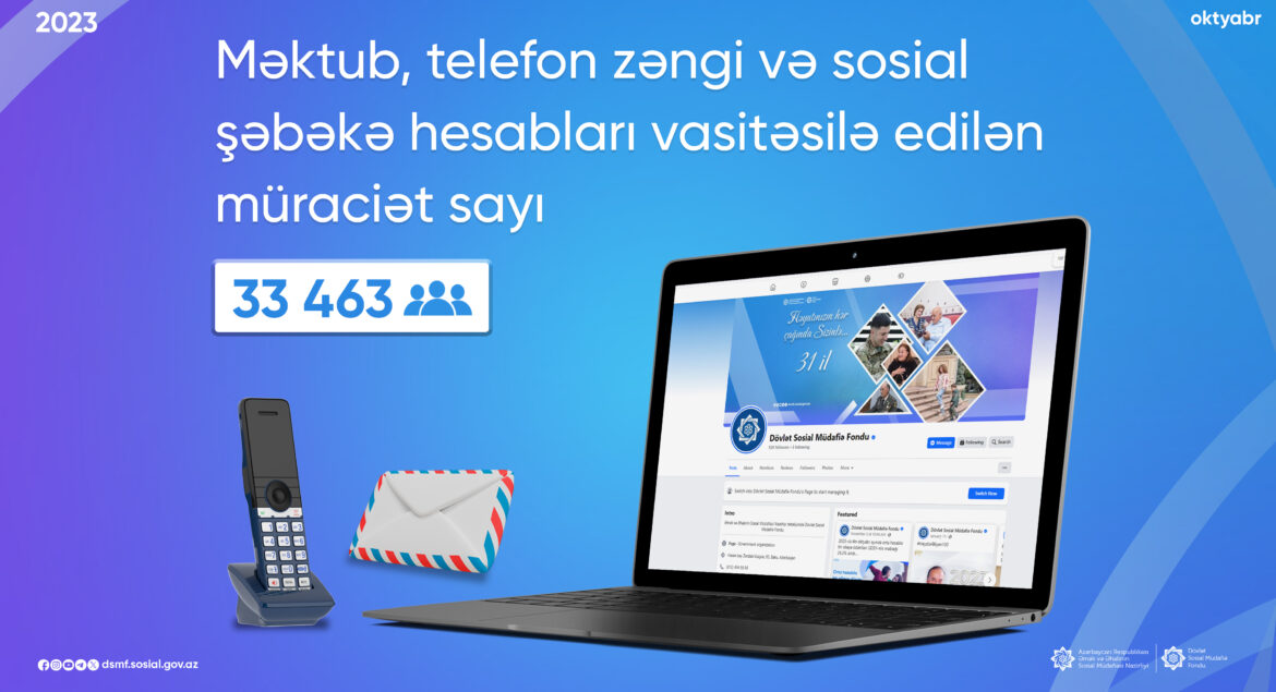 2023-cü ilin 10 ayı ərzində Dövlət Sosial Müdafiə Fondunun Mərkəzi Aparatına ümumilikdə məktub, telefon zəngi və sosial şəbəkə hesabları vasitəsilə 33 463 vətəndaş müraciəti ünvanlanıb və cavablandırılıb. Bunlardan 31 622-si rəsmi məktub və telefon zəngləri, 1 841-i isə sosial şəbəkə hesablarından daxil olan müraciətlərdir.