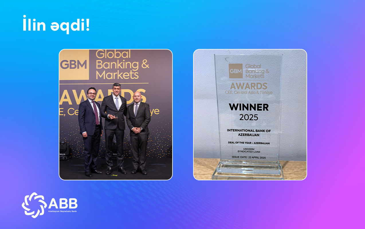 Bütün ölkələr üzrə ən innovativ və mühüm maliyyə əməliyyatlarının dəyərləndirilməsini aparan “The Global Banking & Markets” təşkilatı ABB-nin bu ilin aprelində 200 milyon ABŞ dolları dəyərində sindikatlaşdırılmış kredit cəlb etməsini Azərbaycan üzrə “İlin əqdi” mükafatına layiq görüb.