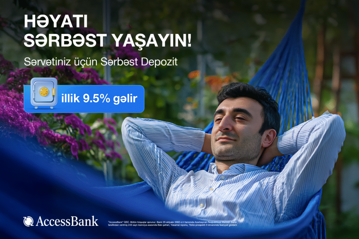 25.09.2025 Müştəriyönümlü yanaşması ilə seçilən AccessBank “Sərbəst depozit” məhsulunu təqdim edir. Bu əmanət həm yüksək gəlir, həm də vəsaitlər üzərində tam sərbəstlik imkanı yaradır.