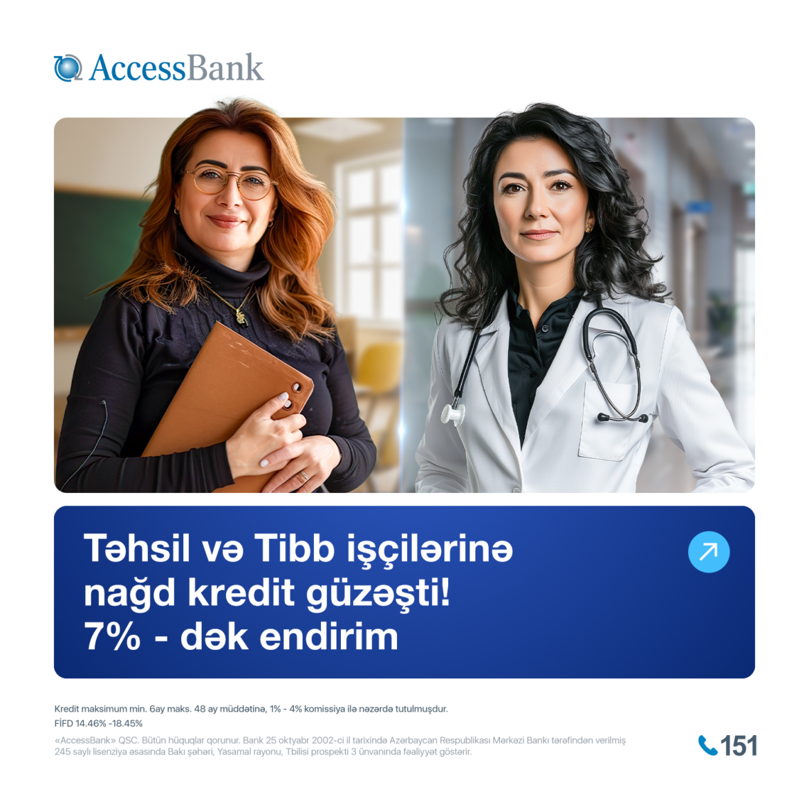 Müxtəlif peşə sahiblərinə sərfəli fərdi maliyyə həlləri təklif edən AccessBank, səhiyyə və təhsil işçiləri üçün eksklüziv kampaniyaya start verir.