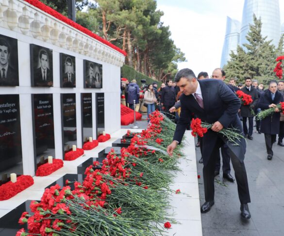Azərbaycan Respublikası Mərkəzi Bankının rəhbərliyi və kollektivi 20 Yanvar – Ümumxalq Hüzn Günü ilə əlaqədar Şəhidlər xiyabanını ziyarət etdilər.