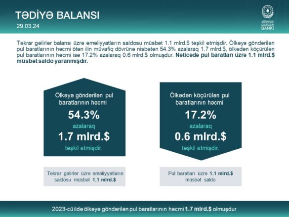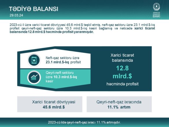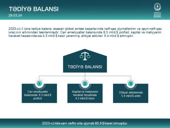 BankMaliyyəÖnə çıxanlarStatistika Azərbaycan Respublikasının tədiyə balansı Mərkəzi Bankın saytında yerləşdirilmişdir – Foto by anar 29/03/2024 29/03/2024 0 comments 3 views 0 minutes read 3 2023-cü ilin yekunu üzrə Azərbaycan Respublikasının tədiyə balansı Mərkəzi Bankın saytında yerləşdirilmişdir. Ətraflı: https://uploads.cbar.az/assets/48f47245efff305a04cde10e0.pdf 2023hesabatMərkəzi Bank Share 0 FacebookTwitterLinkedinOdnoklassnikiWhatsappTelegramEmail previous post Azərbaycandan xaricə 3 milyard dollardan çox pul köçürülüb – Foto next post Yeni internet televiziya – DOST TV fəaliyyətə başlayır You may also like Qlobal bazarlar yeni həftəyə geosiyasi risklər və makroiqtisadi göstəricilərlə başlayır 17/04/2026 Maliyyə Nazirliyi: 2027-ci ildə icmal büdcə gəlirləri 48 milyard manatı ötəcək 17/04/2026 Beynəlxalq Valyuta Fondu və Dünya Bankı toplantılarında Sİ riskləri gündəmə gəldi 17/04/2026 Azərbaycan Kredit Bürosunun Müşahidə Şurasına yeni sədr seçilmişdir 17/04/2026 Expressbank və GXSSD İctimai Birliyi arasında tərəfdaşlıq memorandumu imzalanıb 17/04/2026 Azərbaycan Beynəlxalq Valyuta Fondu ilə makroiqtisadi sabitliyi müzakirə edib 17/04/2026 Leave a Comment Cancel Reply Your rating: Save my name, email, and website in this browser for the next time I comment. Δ