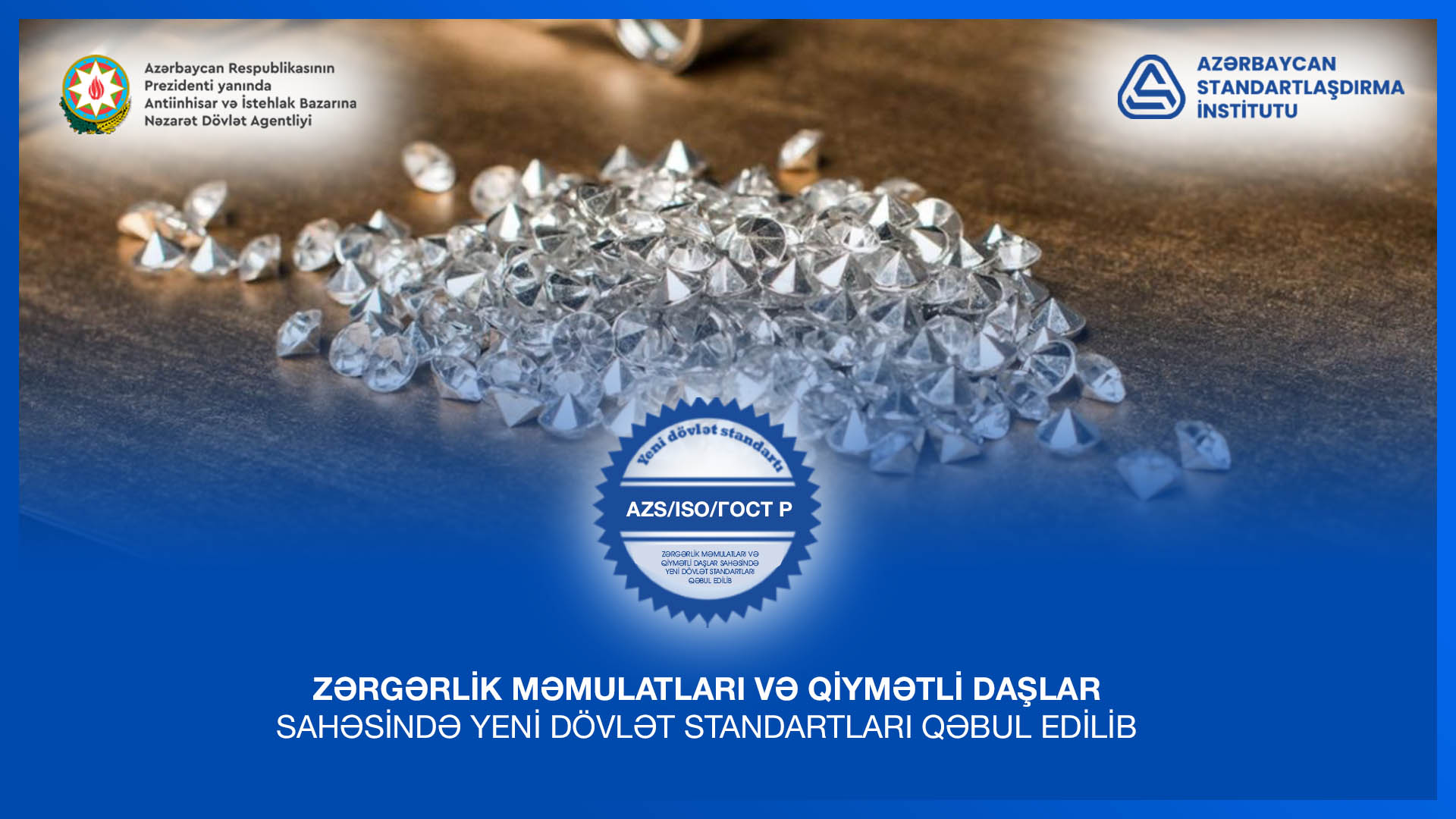Azərbaycan Respublikasının Prezidenti yanında Antiinhisar və İstehlak Bazarına Nəzarət Dövlət Agentliyinin tabeliyində olan Azərbaycan Standartlaşdırma İnstitutu (AZSTAND)  tərəfindən AZS 979:2025 (ГОСТ Р 71116-2023) “Qiymətli daşlar. Terminlər və təriflər”, habelə AZS ISO 15096:2025 “Zərgərlik məmulatları və qiymətli metallar – Yüksək saflıqlı gümüşün təyini – ICP-OES üsulundan istifadə olunmaqla fərqlər üsulu” yeni dövlət standartları qəbul edilib.