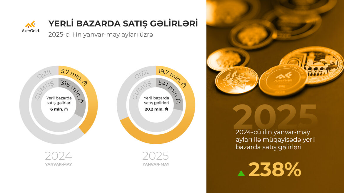 Cari ilin ilk 5 ayında qiymətli məhsulların daxili bazar satışlarından 20.2 milyon manat gəlir əldə edilib. Bu, ötən ilin eyni dövrü ilə müqayisədə daxili satış gəlirlərində 238% artım deməkdir.