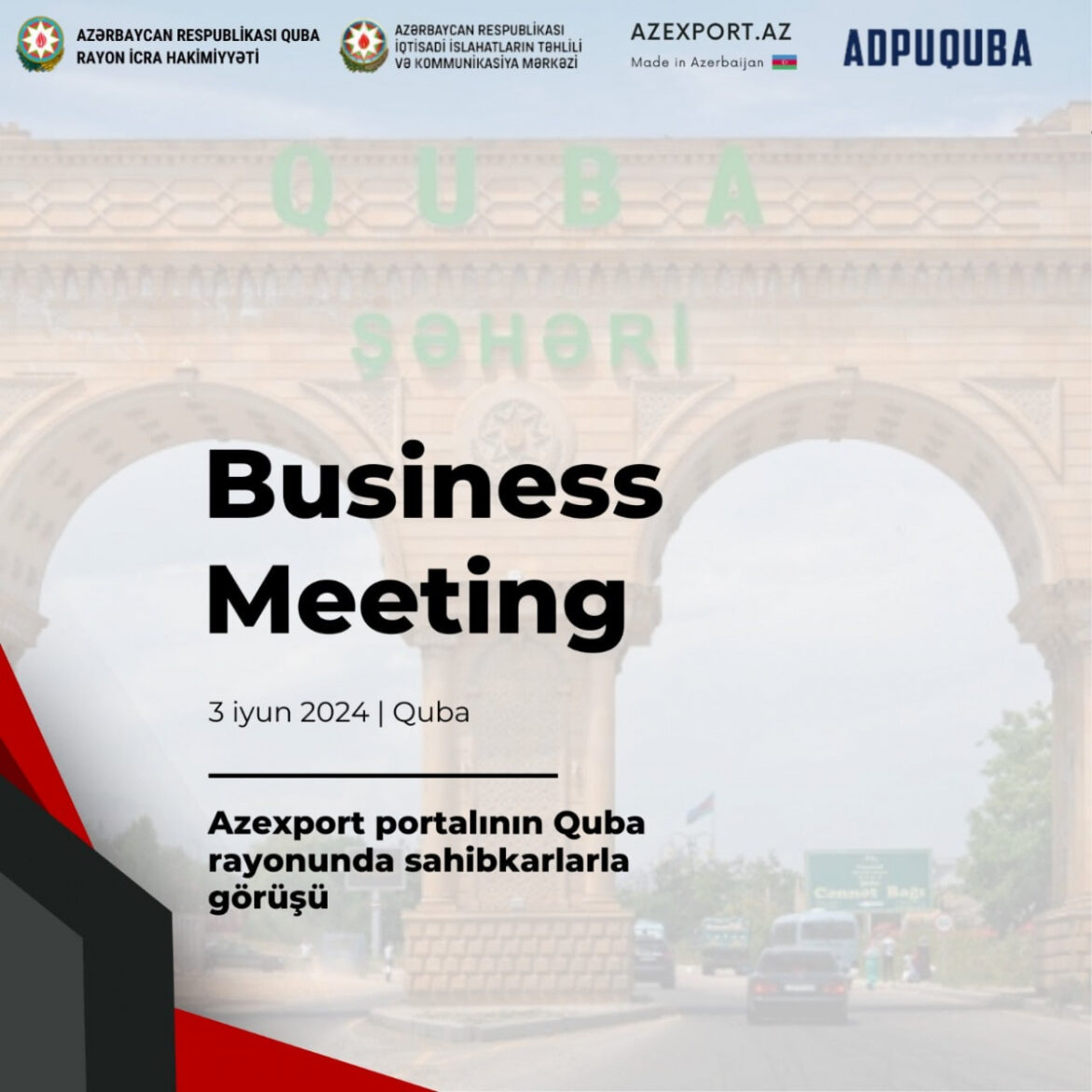 Quba rayonunda fəaliyyət göstərən sahibkarların və gənclərin elektron ticarət biliklərinin artırılması məqsədilə görüş təşkil olunacaq. Quba Rayon İcra Hakimiyyətinin və Azərbaycan Dövlət Pedaqoji Universitetin Quba filialının dəstəyi ilə baş tutacaq tədbirdə İqtisadi İslahatların Təhlili və Kommunikasiya Mərkəzinin operatoru olduğu Azexport portalının iş prinsipi və portalın xarici bazarlara çıxış üçün təqdim etdiyi imkanlar barədə məlumatlar veriləcək.