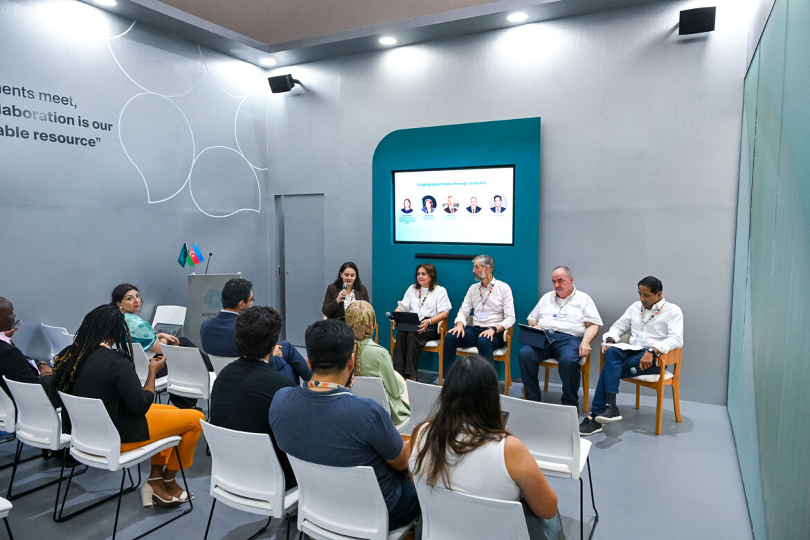 Azərbaycan Respublikasının Prezidenti yanında Antiinhisar və İstehlak Bazarına Nəzarət Dövlət Agentliyinin tabeliyində olan Azərbaycan Standartlaşdırma İnstitutu (AZSTAND) tərəfindən (AZSTAND) Braziliyanın Belem şəhərində keçirilən BMT-nin İqlim Dəyişikliyi üzrə Çərçivə Konvensiyasının 30-cu Tərəflər Konfransının (COP30) “Mavi Zona”sında yerləşən Azərbaycan pavilyonunda “Standartlar vasitəsilə yaşıl gələcəyin formalaşdırılması (Shaping green future through standards)” mövzusunda panel sessiyası təşkil edilib.