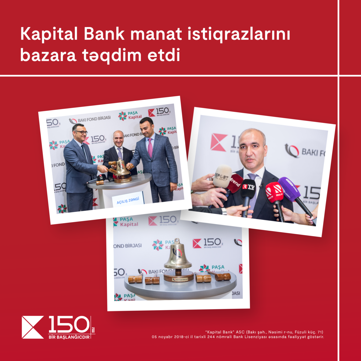 Ölkənin birinci bankı Kapital Bank kapital bazarında həm yerli, həm də xarici valyutada yeni maliyyə alətlərinin buraxılışını həyata keçirir. Daha öncə bank rəsmiləri 100 000 000 (yüz milyon) manat həcmində istiqrazın bazara buraxılacağı haqqında məlumat vermişdilər. 10 iyun 2024-cü il tarixində Bakı Fond Birjasında təntənəli Açılış zəngi tədbiri ilə bankın 50 000 000 (əlli milyon) manat həcmində istiqrazlarının yerləşdirilməsinə başlanıldı.