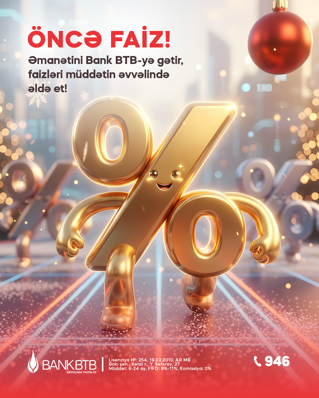 Bank “BTB” ASC “Öncə faiz!” əmanət kampaniyası DAVAM EDİR!