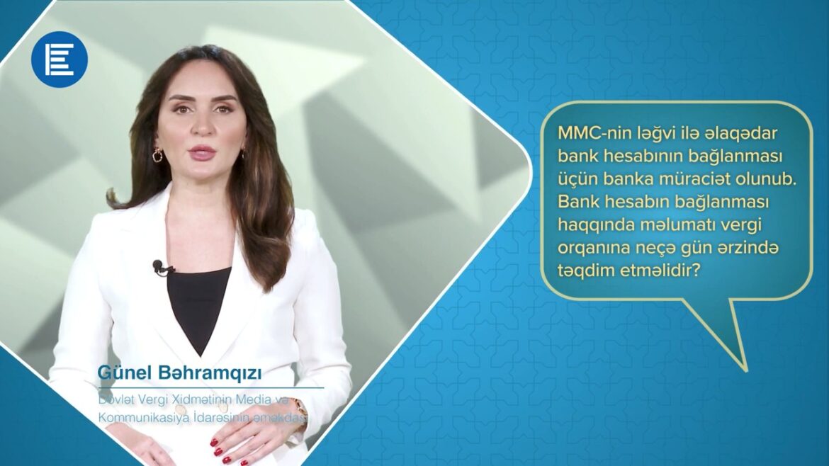 MMC-nin ləğvi ilə əlaqədar bank hesabının bağlanması üçün banka müraciət olunub. Bank hesabının bağlanması haqqında məlumatı vergi orqanına neçə gün ərzində təqdim etməlidir?