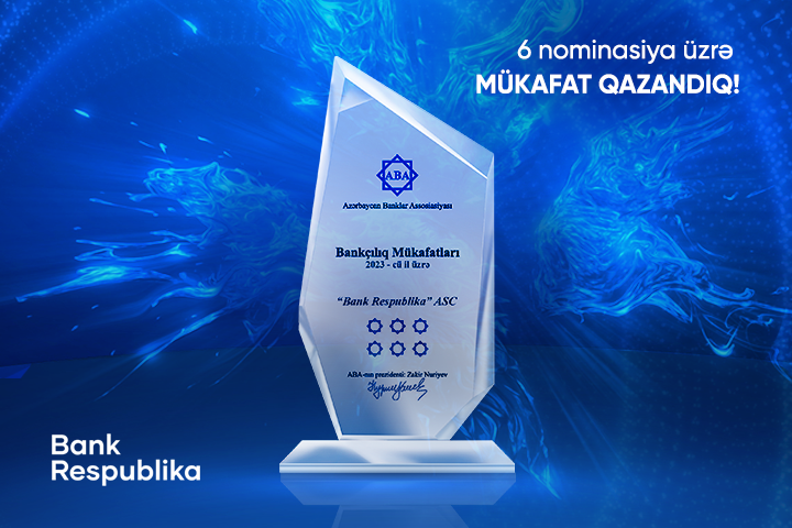 Bank Respublika 2023-cü il ərzində həyata keçirdiyi uğurlu layihələrə görə Azərbaycan Banklar Assosiasiyası tərəfindən 6 nominasiyada qalib edilib.