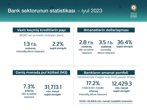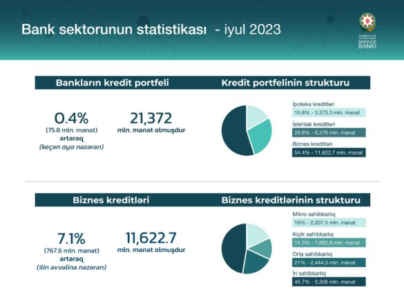 BankMaliyyəÖnə çıxanlarStatistikaTOP xəbərlər Bank sektorunun statistikası – İyul 2023 by anar 21/08/2023 21/08/2023 0 comments 16 views 0 minutes read 16 BBN.az Azərbaycan Mərkəzi Bankına (AMB) istinadən Bank sektorunun 2023-cü il iyul ayını əhatə edən statistikasını təqdim edir. AMBMərkəzi Bank Share 0 FacebookTwitterLinkedinOdnoklassnikiWhatsappTelegramEmail previous post “Hər 5000 AZN kredit üçün ayda 150 AZN ödəniş” kampaniyası davam edir next post Ödəniş sistemlərinin statistikası – İyul 2023 You may also like “Qırmızı Ürəklər” Təhsil Təqaüd Proqramının qalibləri donorlarla görüşüb 11/02/2026 “AFB Bank” brendinin yenilənməsi imkanlarını araşdırır 11/02/2026 AMB-də kommersiya banklarının strateji hədəfləri müzakirə olunub 11/02/2026 Mərkəzi Bank: 10 manatlıq əskinaslar ödəniş terminallarında qəbul edilməlidir 11/02/2026 Azərbaycan Respublikasının Mərkəzi Bankının 168 günlük Notlarının yerləşdirilməsi üzrə hərrac keçirilmişdir 11/02/2026 Azərbaycan Respublikasının Mərkəzi Bankının 28 günlük Qısamüddətli Notlarının yerləşdirilməsi üzrə hərrac keçirilmişdir 11/02/2026 Leave a Comment Cancel Reply Your rating: Save my name, email, and website in this browser for the next time I comment. Δ