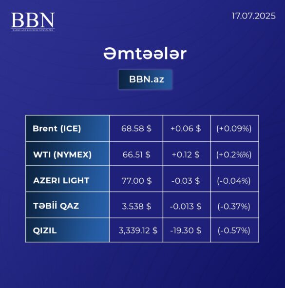 AzərbaycanƏmtəə bazarları Beynəlxalq əmtəə bazarlarının göstəriciləri (17.07.2025) by yunus 17/07/2025 17/07/2025 0 comments 1 views 0 minutes read 1 BBN.az əsas enerji və qiymətli metallar bazarlarının cari qiymətlərini təqdim edir. əmtəə bazarları Share 0 FacebookTwitterLinkedinOdnoklassnikiWhatsappTelegramEmail previous post “Ticarətə İcazə” qərarı verilmişdir next post ABA eksperti likvidlik risklərinə yeni yanaşmanı izah edir – MÜSAHİBƏ You may also like Unibank-da Yeni Təyinatlar 13/01/2026 Rəqəmsal bankçılıqda yeni dövr: bütün bank əməliyyatlarınızı Birbank-da izləyin 13/01/2026 Azərbaycanda ödəniş kartlarının sayı 12%-dən çox artıb 13/01/2026 Pərviz Şahbazov: “ARDNF-nin İtaliyadakı investisiya portfelinin bazar dəyəri 2,8 milyard dollar təşkil edir” 13/01/2026 AMB-nin Naxçıvan idarəsində tikinti işləri aparılacaq 13/01/2026 “Citi” qızıl və gümüşün qiymət proqnozlarını artırdı 13/01/2026 Leave a Comment Cancel Reply Your rating: Save my name, email, and website in this browser for the next time I comment. Δ