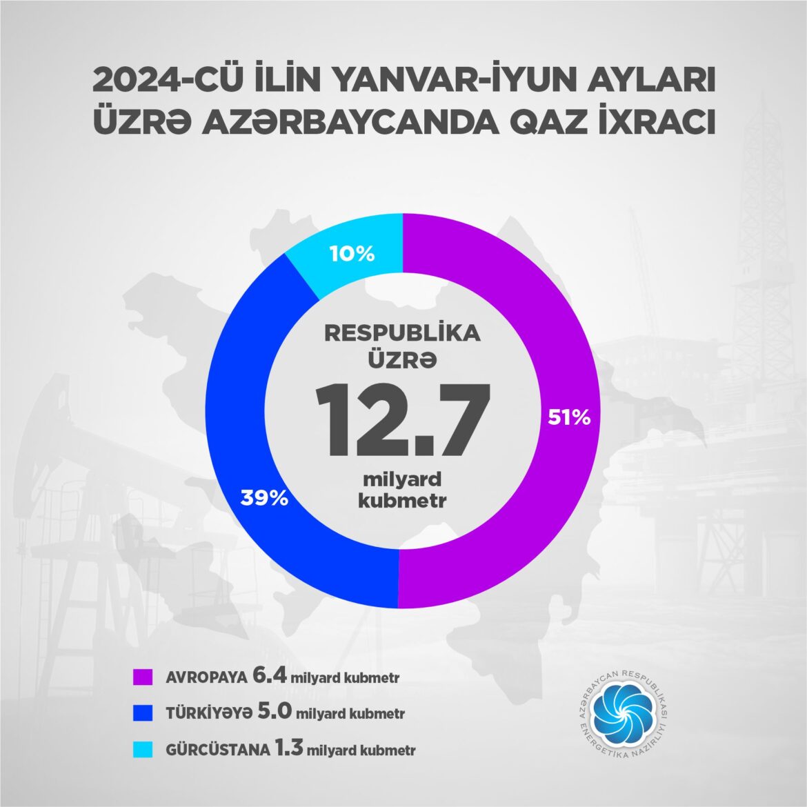 Hesabat dövründə xaricə qaz satışı təxminən 12,7 milyard kubmetr təşkil edib ki, bu da ötən ilin müvafiq dövrü ilə müqayisədə təqribən 6 faiz çoxdur. Cari ilin yanvar-iyun aylarında Türkiyəyə təqribən 5 milyard kubmetr, Avropaya təqribən 6,4 milyard kubmetr, Gürcüstana isə 1,3 milyard kubmetr qaz satılıb. Qeyd edək ki, Türkiyəyə TANAP-la bu müddətdə 2,8 milyard kubmetr qaz nəql olunub.