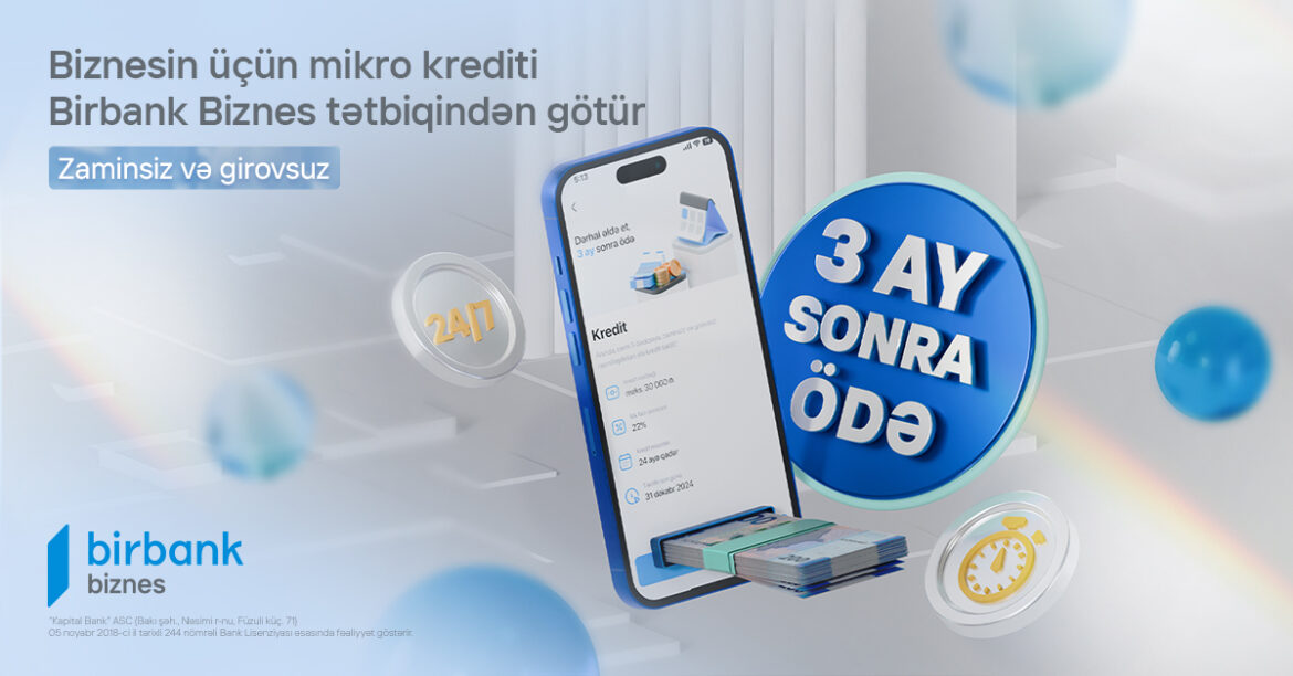 Maliyyə resurslarını mikro biznes sahiblərinə əlçatan edən Birbank Biznes-in bu kampaniyası 30 dekabr 2024-cü il tarixinədək keçərlidir. İndi vaxt itirməyə ehtiyac yoxdur. Sadəcə bir kliklə 30 000 manatadək kredit sizin olsun. Yeni sərmayə axtaran və ya biznesini genişləndirmək istəyən sahibkarları bu fürsətdən faydalanmağa dəvət edirik.