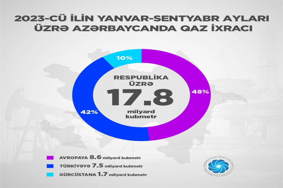 AvropaAzərbaycanEnergetikaİqtisadiyyatÖnə çıxanlarTOP xəbərlər Bu il Avropaya 8.6 milyard kubmetr qaz ixrac edilib by anar 16/10/2023 16/10/2023 0 comments 2 views 0 minutes read 2 2023-cü ilin yanvar-sentyabr aylarında qaz ixracı 9% artıb. BBN.az xəbər verir ki, Avropaya 8.6 mlrd.m3, Türkiyəyə 7.5 mlrd.m3, Gürcüstana isə 1.7mlrd.m3 qaz ixrac olunub. Qeyd edək ki, bu dövrdə Trans-Anadolu Qaz Boru Kəməri (TANAP) Türkiyəni 4.3 mlrd.m3 qazla təchiz edib. AvropaAzərbaycanenergetikaqaz Share 0 FacebookTwitterLinkedinOdnoklassnikiWhatsappTelegramEmail previous post Azad edilmiş ərazilərdə sahibkarlara kommunal xidmətlərdən istifadəyə görə maliyyə yardımı ödəniləcək next post 2023-cü il 19 milyon ton neft ixrac edilib You may also like Azərbaycanın turizm imkanları Türkiyədə keçirilən beynəlxalq sərgidə təqdim olunur 06/02/2026 AQEM-ə üzv ölkələr KOB-ların yaşıl iqtisadiyyata keçidinə dair təcrübələrini bölüşüblər 06/02/2026 Naxçıvanın iqtisadi potensialı və tətbiq edilən güzəştlərlə bağlı tədbir keçirilib 06/02/2026 Kapital Bank və Milli Aviasiya Akademiyası arasında əməkdaşlıq memorandumu imzalanıb 06/02/2026 ETX bank və dövlət sektoruna qarşı fişinq cəhdinin detallarını açıqlayıb 06/02/2026 Yelo Bank-da kredit faizləri artıq 8.9%-dən başlayır! 06/02/2026 Leave a Comment Cancel Reply Your rating: Save my name, email, and website in this browser for the next time I comment. Δ