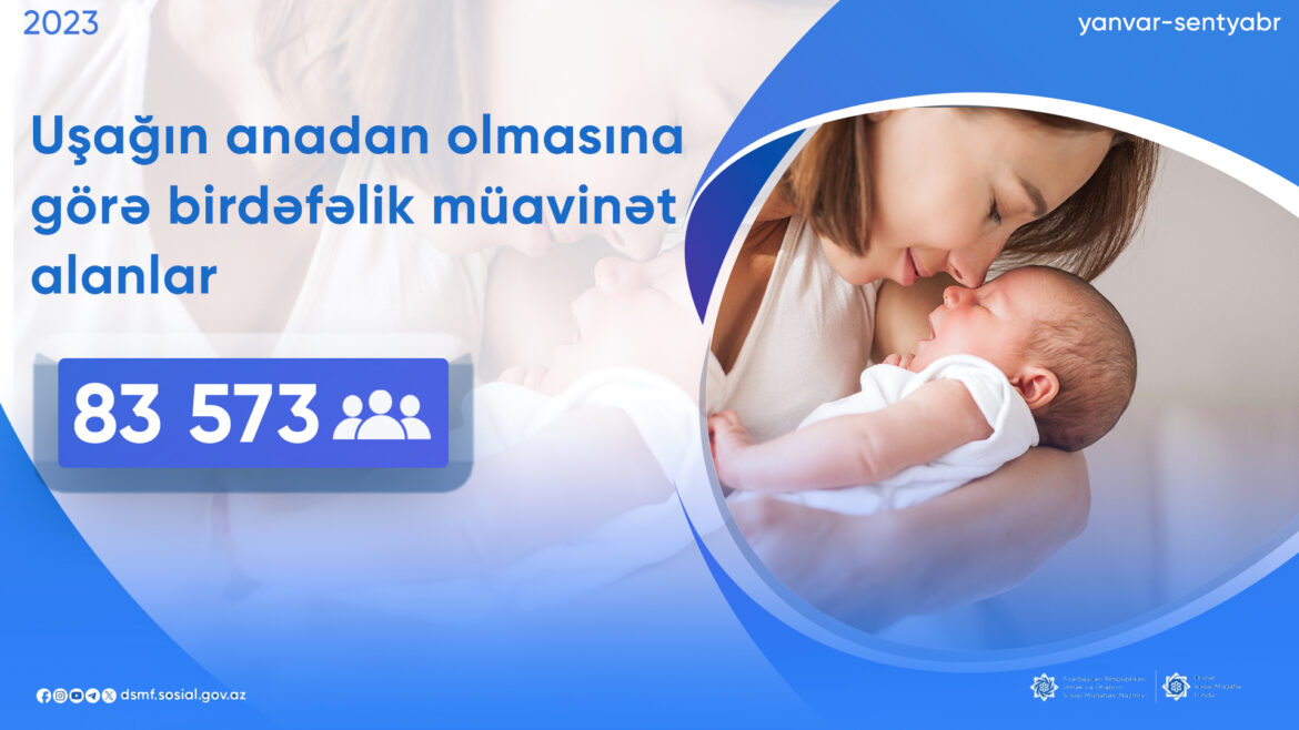 2023-cü ilin 9 ayı ərzində 83 573 nəfərə uşağın anadan olmasına görə proaktiv qaydada birdəfəlik müavinət təyin olunaraq Fond tərəfindən ödəniş edilib.
