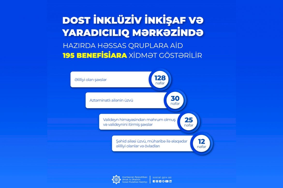 Əmək və Əhalinin Sosial Müdafiəsi Nazirliyinin tabeliyindəki DOST İnklüziv İnkişaf və Yaradıcılıq Mərkəzinə daha 20-dək benefisiar cəlb olunub.
