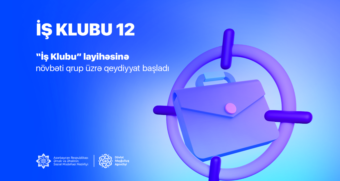 Əmək və Əhalinin Sosial Müdafiəsi Nazirliyinin tabeliyində Dövlət Məşğulluq Agentliyinin Mərkəzi Karyera filialı tərəfindən keçirilən “İş Klubu 12” layihəsinə qeydiyyat başlayıb.