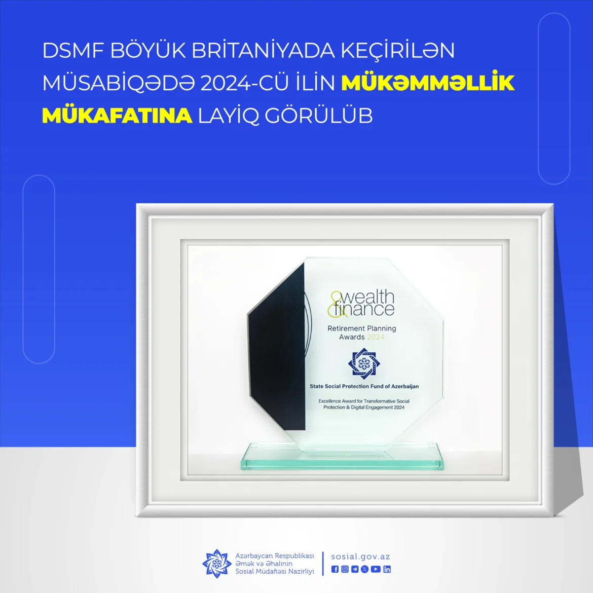 DSMF müsabiqədə “Transformativ sosial müdafiə və rəqəmsal əks-əlaqə üzrə 2024-cü ilin Mükəmməllik Mükafatı”na layiq görülüb.
