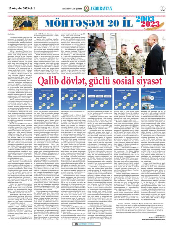 BBN.az xəbər verir ki, məqalədə Prezident İlham Əliyevin sosial sahəyə xüsusi qayğısı nəticəsində son 20 ildə əldə olunan sosial nailiyyətlərdən bəhs olunur.