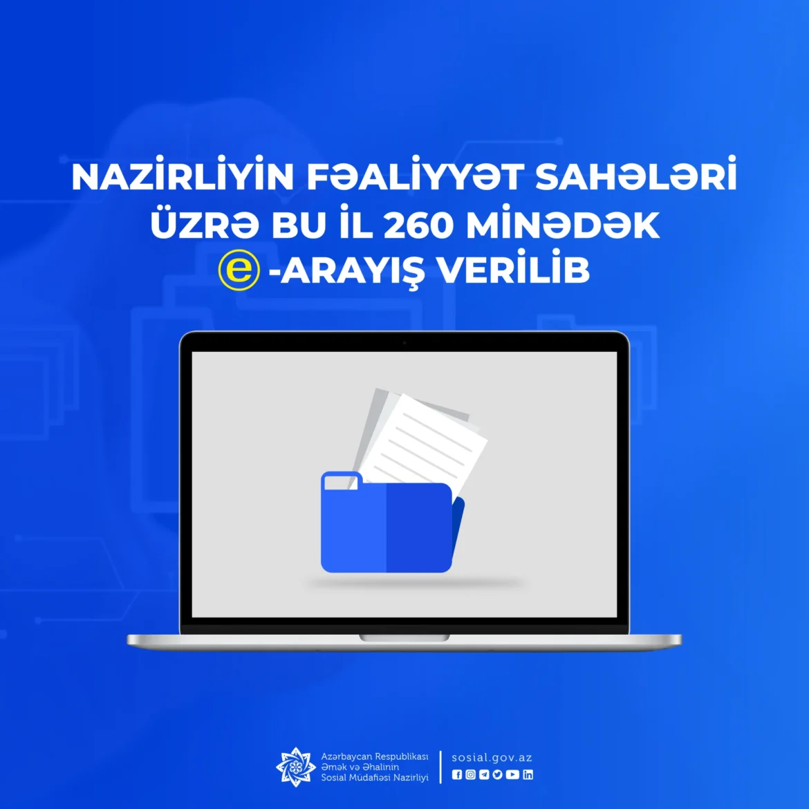 Əmək və Əhalinin Sosial Müdafiəsi Nazirliyinin fəaliyyət sahələrinə dair elektron arayış xidmətləri vasitəsilə bu il 260 minədək e-arayış verilib.
