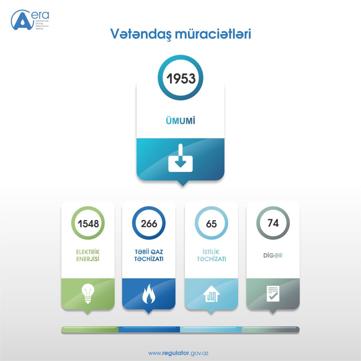 2024-cü ilin IV rübü ərzində istehlakçıların hüquqlarının qorunması, abonentlərin elektrik və istilik enerjisi, təbii qazla təchizatı və digər məsələlərlə bağlı Enerji Məsələlərini Tənzimləmə Agentliyinə (EMTA) bilavasitə və Energetika Nazirliyindən 1953 müraciət daxil olub. Elektrik enerjisi təchizatı ilə bağlı 207-si məlumat üçün olmaqla 1548 müraciət edilib. Təbii qaz təchizatı ilə bağlı 21-i məlumat xarakterli olmaqla 266 müraciət olunub. İstilik təchizatı ilə bağlı 3-ü məlumat üçün olmaqla cəmi 65 müraciət edilib. Digər məsələlərlə bağlı isə 3-ü məlumat üçün olmaqla 74 müraciət göndərilib.