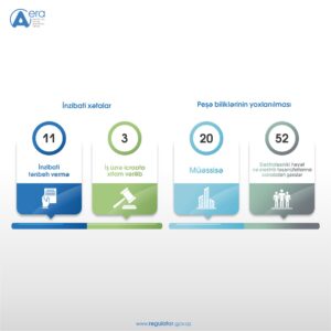 Agentliyin səlahiyyətlərinə aid olan Azərbaycan Respublikası İnzibati Xətalar Məcəlləsinin müvafiq maddələri üzrə 14 inzibati xəta haqqında işə baxılıb, onlardan 11 iş üzrə inzibati tənbeh vermə haqqında qərar, 3 iş üzrə isə icraata xitam verilməsi barədə qərar qəbul olunub.