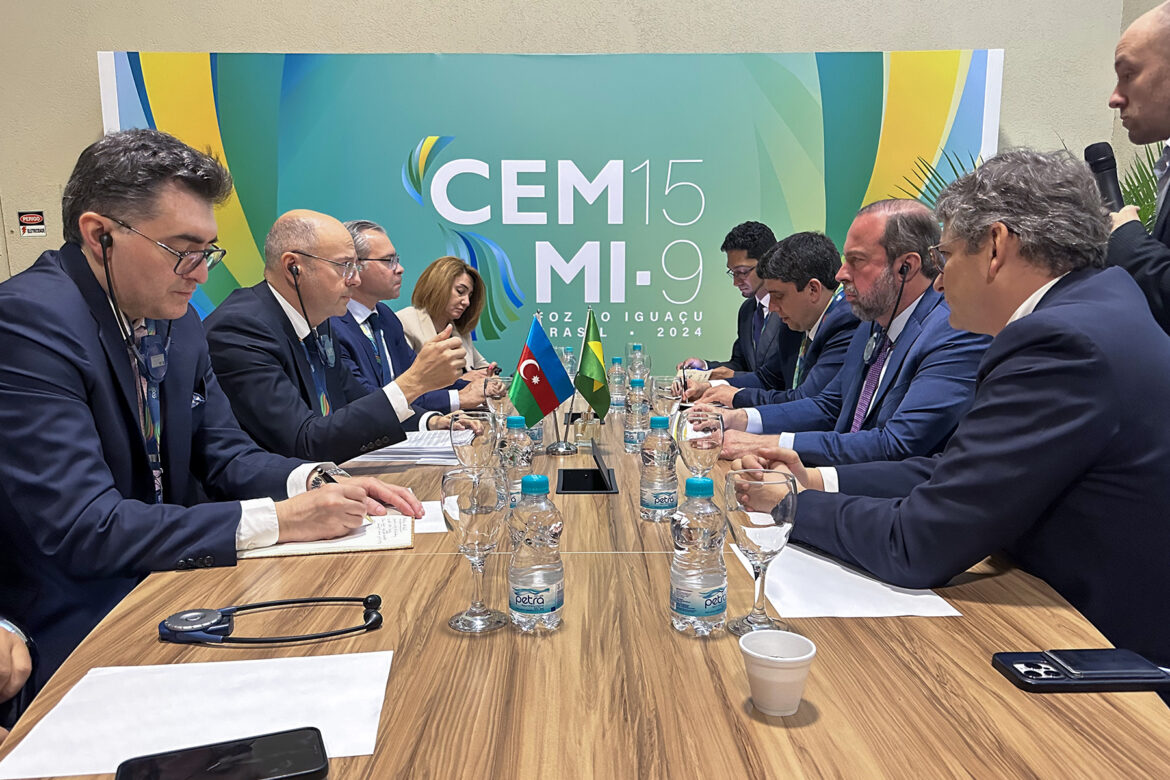 Braziliyanın mədən və energetika naziri Aleksandr Silveira ilə görüşdə ölkələrarası münasibətlərin COP və G20 platformaları vasitəsilə fəal tərəfdaşlıq mərhələsinə daxil olduğu, neft-qaz ölkələri olan Azərbaycan və Braziliyanın enerji keçidində mühüm rol oynadığı qeyd edilib. Azərbaycan, Birləşmiş Ərəb Əmirlikləri və Braziliyadan ibarət COP üçlüyünün yeni öhdəliklər və təşəbbüslərin elan edilməsi və həyata keçirilməsində birgə əməkdaşlığı təmin etdiyi bildirilib. Enerji keçidinə rəvan şəkildə nail olmağın vacibliyi vurğulanıb. Azərbaycanda dövlət başçısının “yaşıl enerji”nin inkişafına və “yaşıl enerji keçidi”nə investisiyaya yol açan siyasəti, aparılan islahatlar, həyata keçirilən layihələrdən bəhs edilib. Bildirilib ki, “yaşıl  enerji” ilə tərəfdaşlarımızın enerji təchizatı və təhlükəsizliyini təmin etmək istiqamətində fəaliyyətimizi davam etdiririk. Avropa və Asiyanı birləşdirən, müxtəlif ölkələri “yaşıl enerji” ilə təchiz edəcək layihələrin təşəbbüskarı məhz Azərbaycandır. Söhbət zamanı COP29 Sədrliyinin təşəbbüsləri, o cümlədən iqlimin maliyyələşdirilməsi istiqamətində atılan addımlar müzakirə olunub. Azərbaycanla Brazilyanın əməkdaşlığının COP məqsədlərinin reallaşdırılmasına  töhfə verəcəyi qeyd olunub.