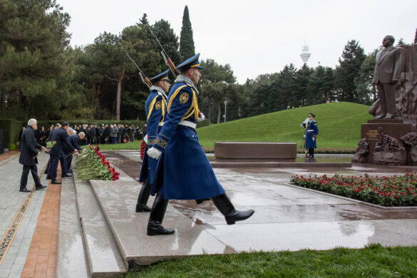 Əvvəlcə nazirliyin rəhbərliyi və kollektivi Fəxri Xiyabana gedərək dahi liderin abidəsini ziyarət edib, önünə gül dəstələri qoyaraq əziz xatirəsini dərin hörmət və ehtiramla yad ediblər.