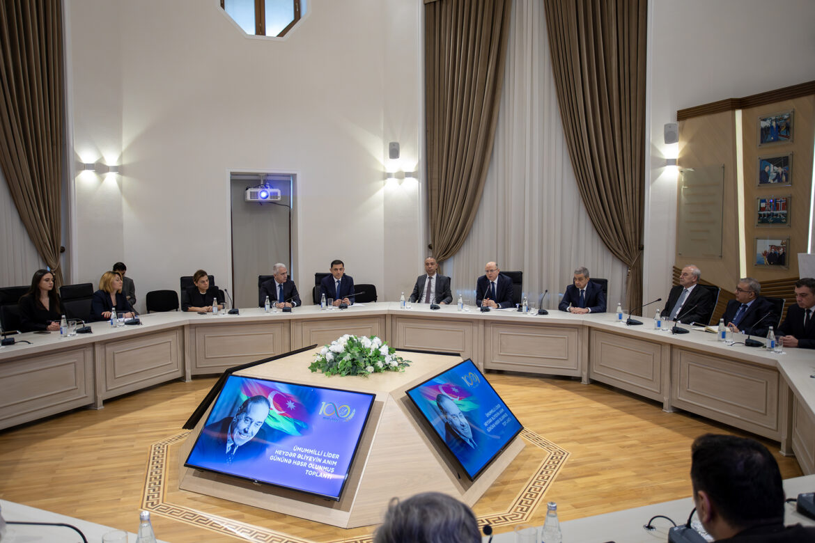 Daha sonra tədbir milli dövlətçiliyimizin banisi Heydər Əliyevin anım gününə həsr olunmuş toplantı ilə davam edib. Toplantıda çıxış edən nazir Pərviz Şahbazov Azərbaycanı tarixinin ən çətin dövrlərində iqtisadi tərəqqiyə, siyasi yüksəlişə və mədəni intibaha aparan Heydər Əliyevin uzaqgörən siyasətinin nailiyyətlərindən danışıb. Bildirilib ki, Ulu Öndərin fenomenal dövlətçilik zəkası, sarsılmaz iradəsi, böyük hədəflərə hesablanmış strateji qərarları ilə qazanılmış irəliləyişlər hesabına müstəqil Azərbaycan dövləti tədricən böhrandan rəvan inkişaf yoluna çıxarılıb, ölkəmizin demokratik-hüquqi dövlət kimi inkişafı təmin edilib.