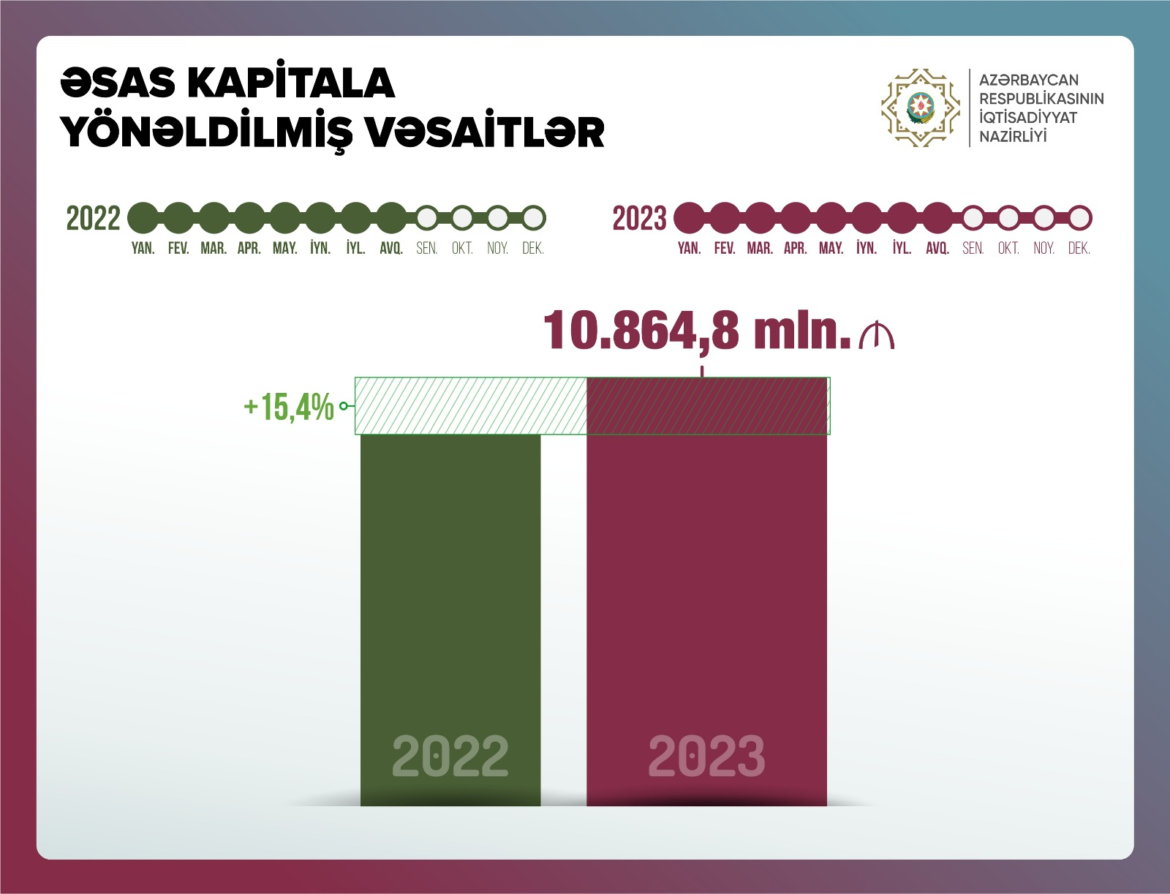İnvestisiyaMaliyyə Əsas kapitala yönəldilmiş vəsaitin həcmi artıb by anar 25/09/2023 25/09/2023 0 comments 1 views 0 minutes read 1 2023-cü ilin 8 ayında əsas kapitala yönəldilmiş vəsaitin həcmi ötən ilin eyni dövrü ilə müqayisədə 15,4% artaraq 10 mlrd. 864,8 mln. manata çatıb. BBN.az xəbər verir ki, bu barədə iqtisadiyyat naziri Mikayıl Cabbarov sosial şəbəkəsi hesabında yazıb. Share 0 FacebookTwitterLinkedinOdnoklassnikiWhatsappTelegramEmail previous post “TBC Kredit” BOKT MMC-nin qiymətli kağızı tədavül müddəti bitdiyinə görə delistinq edilmişdir next post Məşğulluq sahəsində Litva ilə əməkdaşlıq imkanları inkişaf etdirilir You may also like Yanvarda icmal büdcədə 2,7 milyard manata yaxın profisit yaranıb 12/02/2026 Yanvarda dövlət büdcəsində 2,7 milyard manatdan çox profisit yaranıb 12/02/2026 Dövlət əmlakının icarəsindən büdcəyə 4,9 milyon manat daxil olub 12/02/2026 Dövlət büdcəsindən maliyyələşən təşkilatların ödənişli xidmətlərindən daxilolmalar azalıb 12/02/2026 Dövlət Gömrük Komitəsi yanvarda büdcəyə 487 milyon manat köçürüb 12/02/2026 “FINCA Azerbaijan” MM QBKT-nin istiqrazlarının yerləşdirilməsi üzrə hərrac yekunlaşmışdır 12/02/2026 Leave a Comment Cancel Reply Your rating: Save my name, email, and website in this browser for the next time I comment. Δ