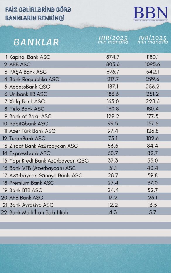 Faiz gəlirlərinə görə bankların – RENKİNQİ