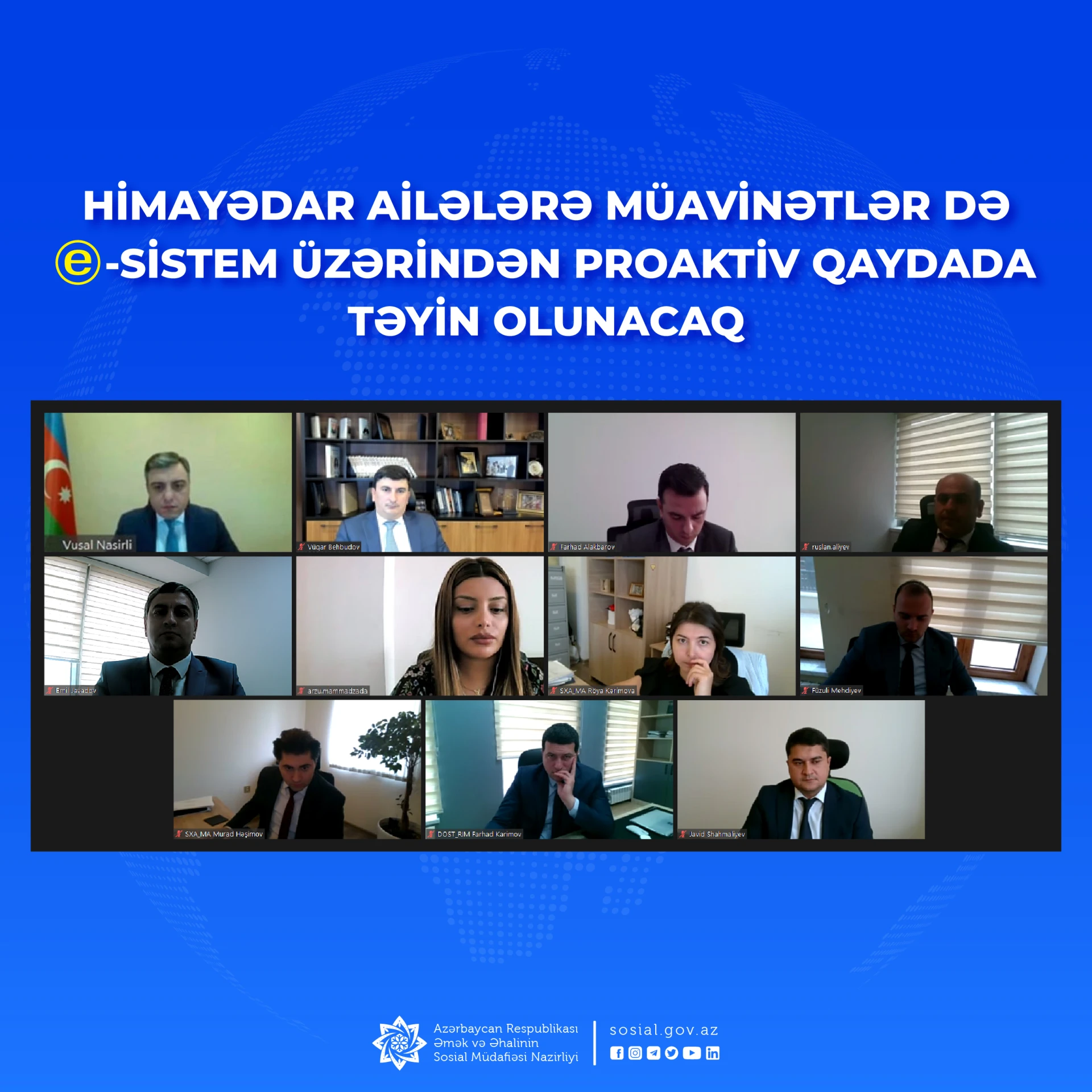 Bu barədə “Himayədar ailə” institutunun tətbiqi və uşaqların dövlət uşaq müəssisələrinə düşməsinin qarşısının alınması ilə bağlı Əmək və Əhalinin Sosial Müdafiəsi Nazirliyində fəaliyyət göstərən işçi qrupun icasında bildirilib. İşçi qrupun rəhbəri, əmək və əhalinin sosial müdafiəsi nazirinin müavini Vüsal Nəsirli “Himayədar ailə” institutunun tətbiqi mexanizminin qurulması sahəsində aparılan işləri qeyd edib.