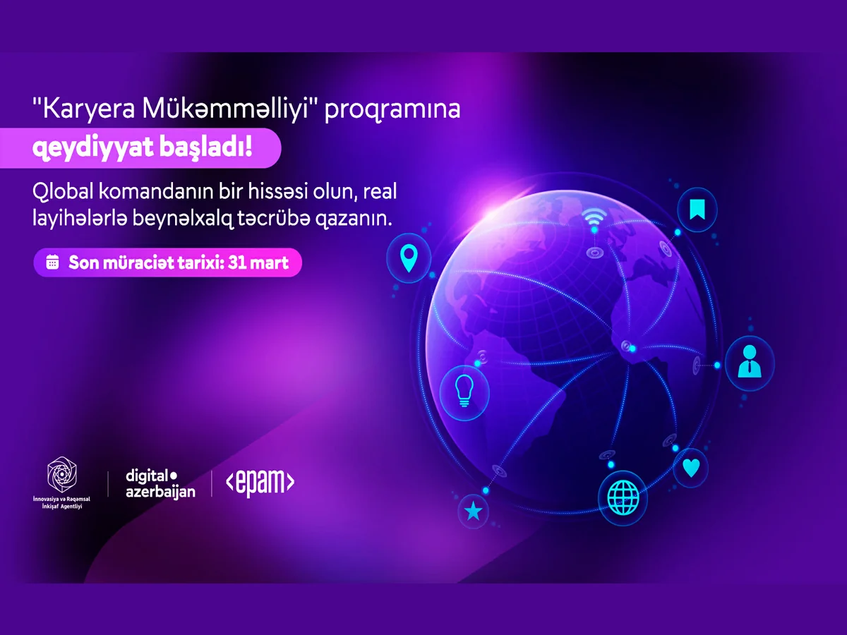 İnnovasiya və Rəqəmsal İnkişaf Agentliyi (İRİA) EPAM ilə əməkdaşlıq çərçivəsində “İşə qəbul və öyrət” konsepti əsasında “Karyera Mükəmməlliyi” proqramına müraciətləri açıq elan edir. Proqramın məqsədi Azərbaycanda İT sahəsində erkən karyera mərhələsində olan istedadları cəlb edərək onların əmək bazarında yüksək tələbat olan bacarıqlara yiyələnməsini təmin etməkdir.