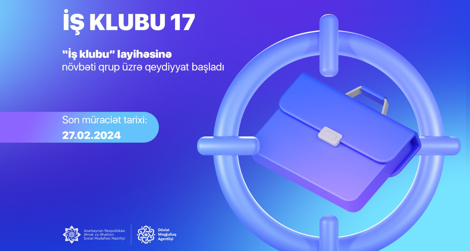 Əmək və Əhalinin Sosial Müdafiəsi Nazirliyinin tabeliyində Dövlət Məşğulluq Agentliyinin Mərkəzi Karyera filialı tərəfindən keçirilən “İş Klubu” layihəsinin 17-ci görüşü üçün qeydiyyat başlayıb.