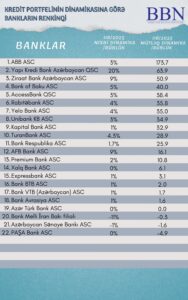 Kredit portfelinin dinamikasına görə hesabatlarını açıqlayan bankların renkinqi aşağıdakı kimidir: