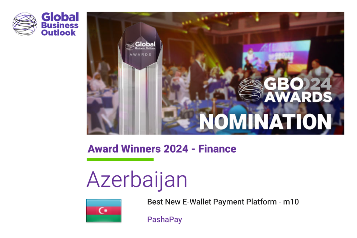 Böyük Britaniyanın “Global Business Outlook” jurnalı “PashaPay” şirkətinin məhsulu olan m10 elektron pulqabını “Best New E-Wallet Payment Platform – m10 – Azerbaijan 2024” seçib.