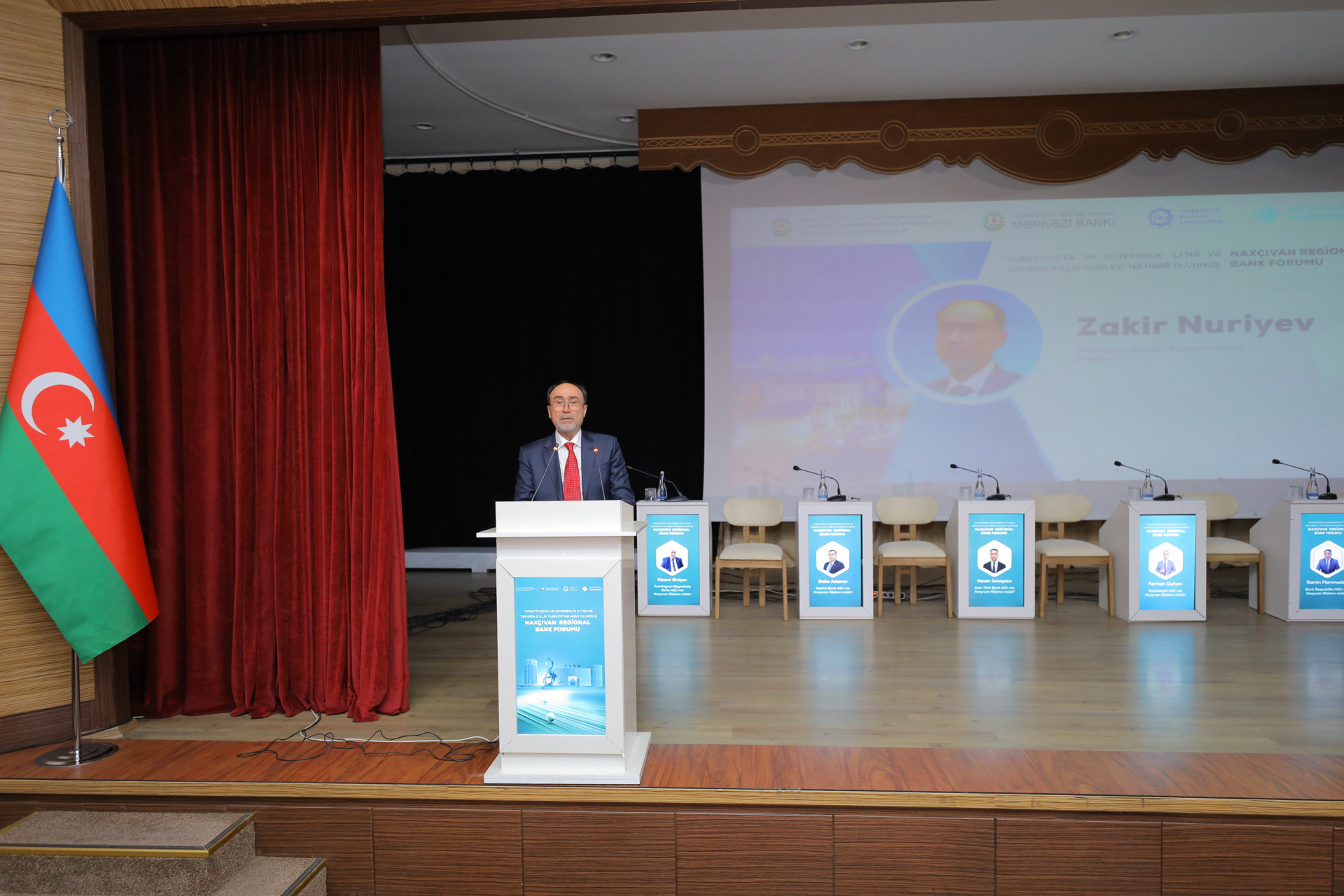 Azərbaycan Banklar Assosiasiyasının prezidenti Zakir Nuriyev çıxışında bank sektorunun son dövrlərdə əldə etdiyi nailiyyətlər, regionlarda, o cümlədən Naxçıvanda maliyyə xidmətlərinin genişləndirilməsi, eləcə də nəqliyyat dəhlizlərinin açılmasının yaratdığı yeni iqtisadi imkanlar barədə məlumat verib.