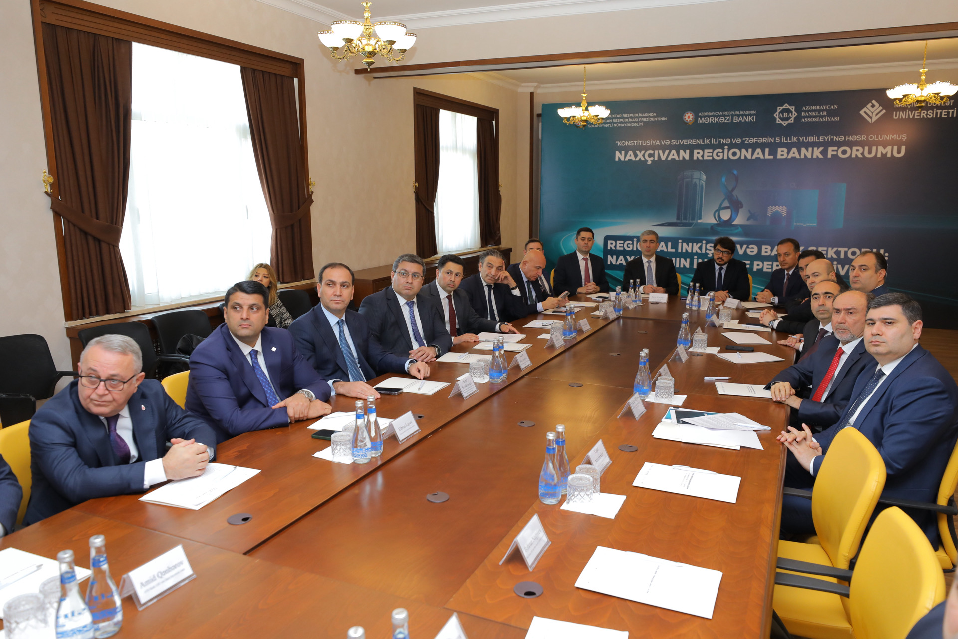 Naxçıvanda Azərbaycan Respublikası Prezidentinin səlahiyyətli nümayəndəliyinin, Azərbaycan Mərkəzi Bankının, Azərbaycan Banklar Assosiasiyasının (ABA) və Naxçıvan Dövlət Universitetinin birgə təşkilatçılığı ilə “Konstitusiya və Suverenlik ili”nə və “Zəfərin 5 illik yubileyi”nə həsr olunmuş Regional Bank Forumu keçirilib.