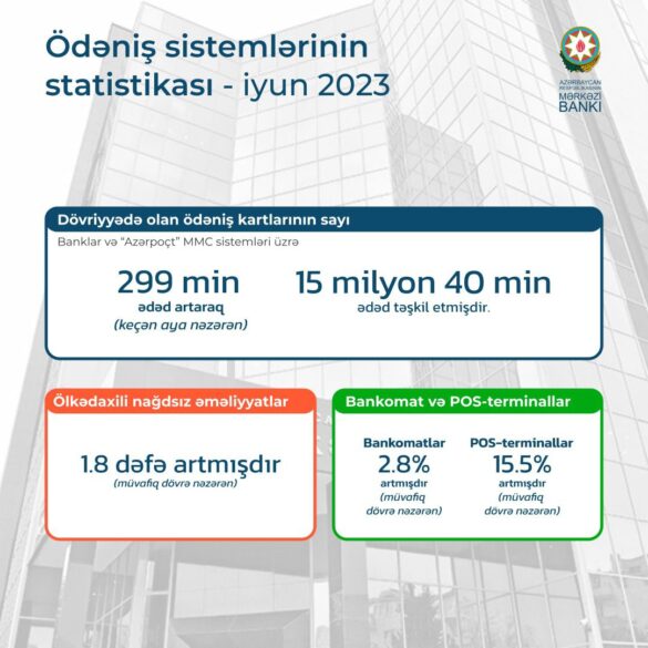 Azərbaycan Mərkəzi Bankı (AMB) 2023-cü ilin iyulun -1ə ödəniş sistemlərinin statistikası ilə bağlı göstəriciləri açıqlayıb.