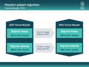 Bu dövür ərzində həyatın yaşam sığırtası üzrə toplanan ığorta haqlarının həcmi 545,6 milyon manat təşkil etmişdir ki ,bu, ötən ilin eyni dövrü ilə müqaisədə 18,3 % çoxdur.