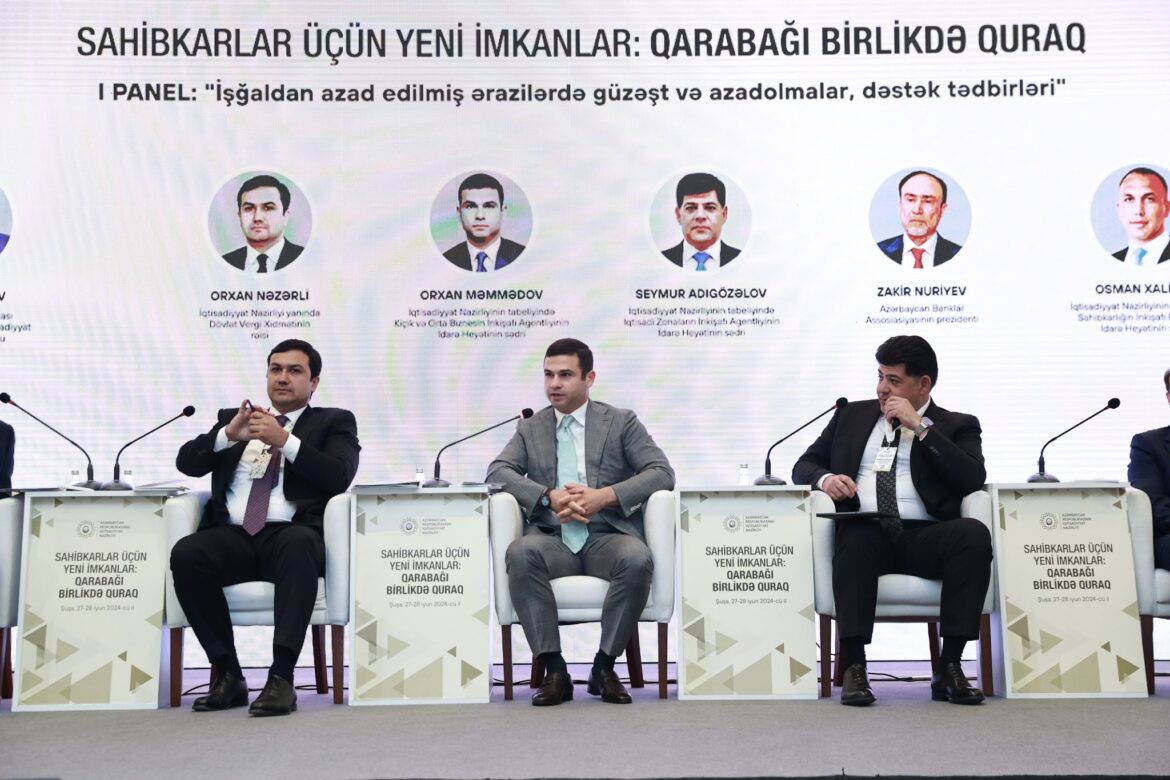 Qeyd edək ki, tədbirdə Qarabağ və Şərqi Zəngəzur iqtisadi rayonlarında sahibkarlıq fəaliyyəti ilə bağlı imkanlar nümayiş olunub. Eyni zamanda, işğaldan azad edilmiş ərazilərdə tətbiq olunan güzəşt və azadolmalar, digər dövlət dəstəyi tədbirləri, bu ərazilərin bərpa və iqtisadi reinteqrasiyasında sahibkarların rolu mövzularında panel müzakirələr təşkil edilib. Sahibkarlara bu ərazilərdə həyata keçirilməsi təklif edilən investisiya layihələri, məhsulların ixrac potensialı, logistika imkanları təqdim edilib, iştirakçıları maraqlandıran suallar cavablandırılıb. Həmçinin G2B (dövlət-biznes) formatında görüşlər keçirilib.