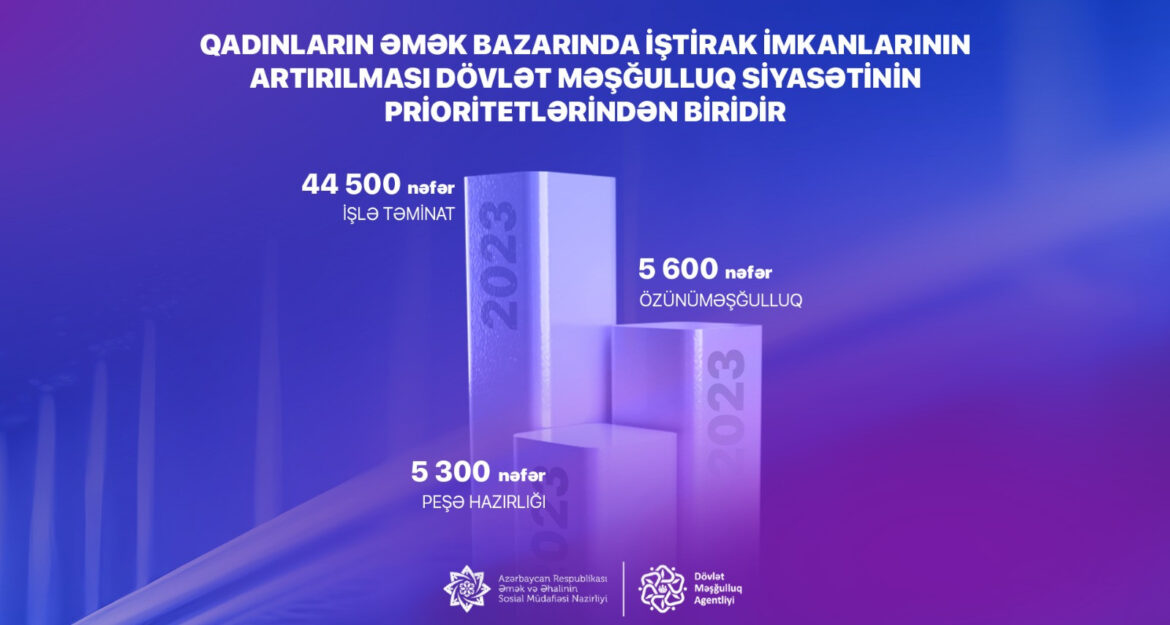 Əmək və Əhalinin Sosial Müdafiəsi Nazirliyinin tabeliyindəki Dövlət Məşğulluq Agentliyi tərəfindən bu istiqamətdə tədbirlərin davamı olaraq, 2023-cü ildə daha 44,5 min qadın münasib işlə təmin olunub.