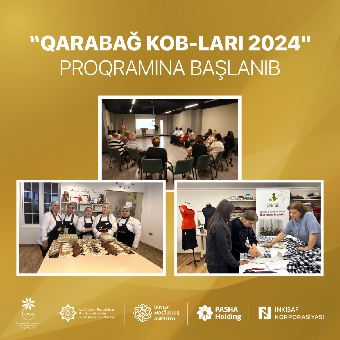 Kiçik və Orta Biznesin İnkişafı Agentliyi (KOBİA), Əmək və Əhalinin Sosial Müdafiəsi Nazirliyinin tabeliyində Dövlət Məşğulluq Agentliyi, “İnkişaf Korporasiyası” QSC-nin birgə təşkilatçılığı, “PASHA Holding” MMC-nin maliyyə dəstəyi ilə “Qarabağ KOB-ları 2024” proqramına başlanılıb.