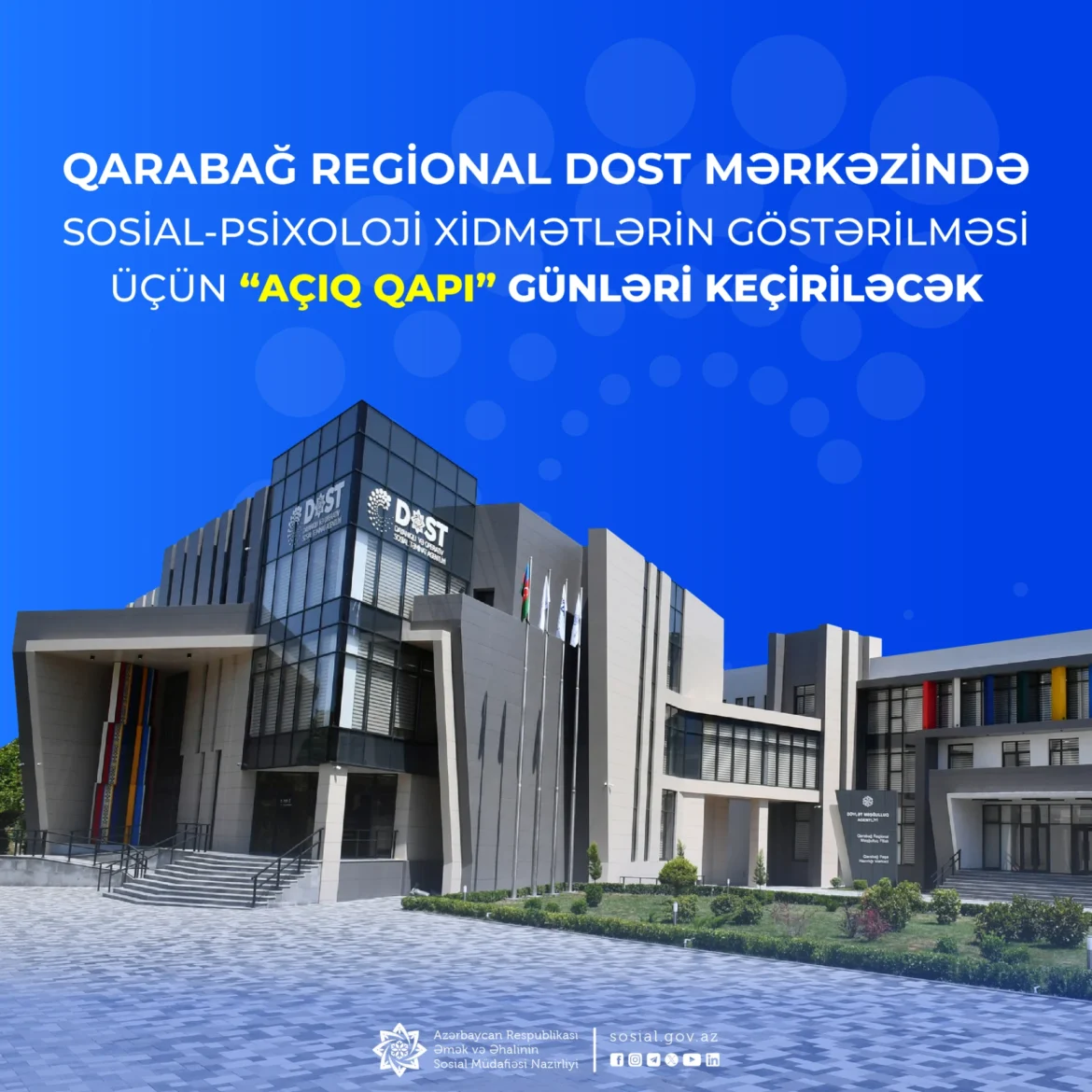 Əmək və Əhalinin Sosial Müdafiəsi Nazirliyinin tabeliyindəki Dövlət Tibbi-Sosial Ekspertiza və Reabilitasiya Agentliyi 3 dekabr – Beynəlxalq Əlliliyi olan Şəxslər Günü ilə əlaqədar Bərdə şəhərindəki Qarabağ Regional DOST Mərkəzindəki Ambulator Reabilitasiya Mərkəzində (“RehaPoint”) “Açıq qapı” günləri keçirəcək.